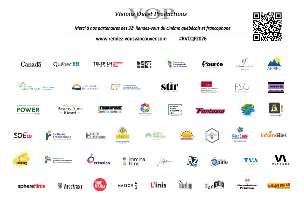 Visions Ouest Productions présente, du 25 février au 8 mars 2026, Les 32e Rendez-vous du cinéma québécois et francophone (#RVCQF2026). Les films sont sous-titrés en anglais.