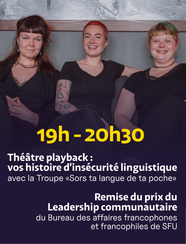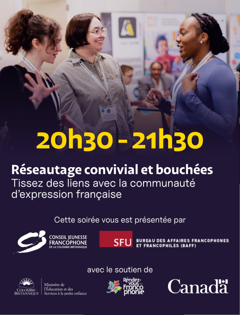 Cet événement ouvert à l'ensemble de la communauté d’expression française de la province se tiendra le samedi 14 mars 2026 de 19h à 21h30 au Campus de Vancouver de l'Université Simon Fraser.