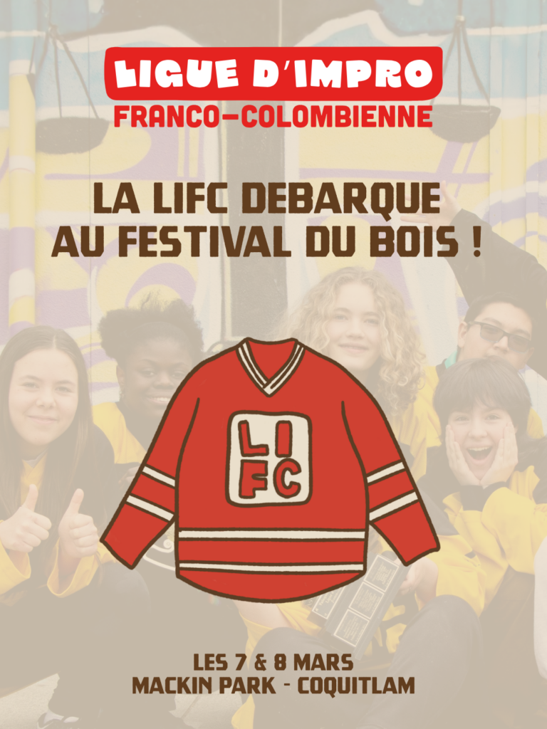 Cette année, l’ensemble du tournoi de la Ligue d’impro franco-colombienne (LIFC) aura lieu sur les planches du Festival du Bois, au parc Mackin, à Coquitlam !