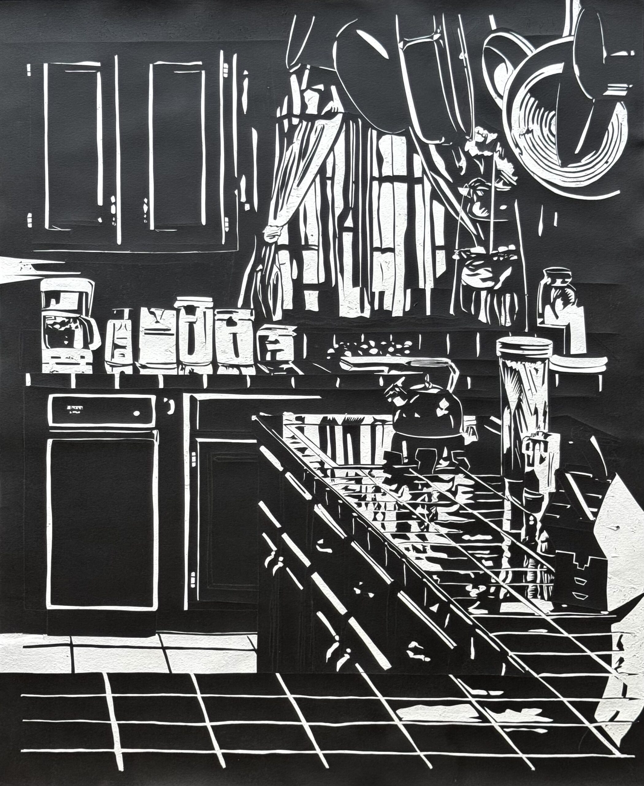 "Dans Intimités arrachées, Mickey Pujolar Leray développe une pratique de l’image fondée sur un paradoxe : faire apparaître en retirant. Là où la tradition picturale construit par accumulation, l’artiste opère par soustraction. Dessiner, encrer de noir puis lacérer, gratter et arracher couche après couche, la surface devient le lieu d’une révélation progressive. L’image n’est pas produite : elle est révélée."